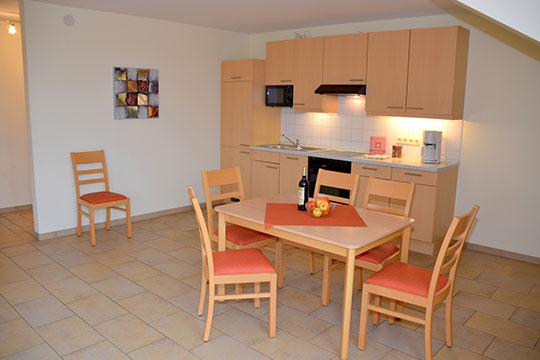 ausgestatteter Küchenzeile sowie einer großen, möblierten